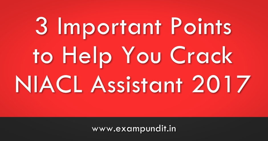 Hello and welcome to exampundit. With 984 vacancies, NIACL Assistant 2017 have attracted thousands of applications. Right now many are focused on SBI PO and many are still wondering how should they approach NIACL Assistant. After going through some important factors that will help you to give your best we are listing down 3 Important Points which will help you to give your best in NIACL Assistant 2017.