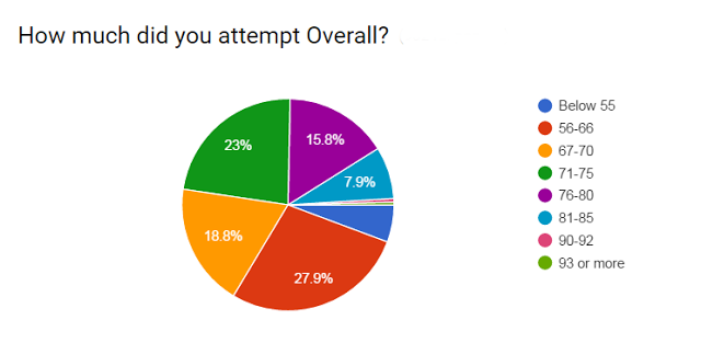 Hello and welcome to exampundit. We received total of 3728 responses from the aspirants. The figures are quite shocking. 1040 people have said to attempt between 56-66.