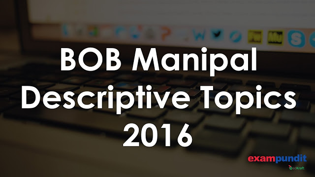 Hello and welcome to exampundit . As you all have requested BOB Manipal Descriptive Topics, here is a list of top 9 descriptive topics for the upcoming exam.