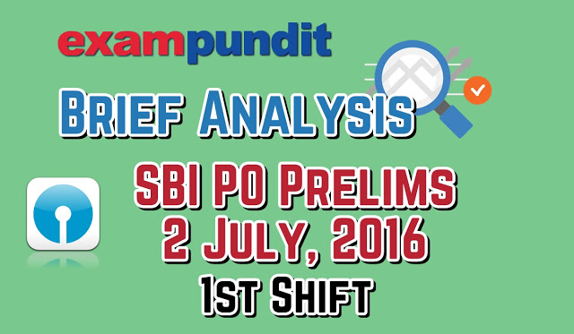 Hello and welcome to exampundit . Here is the brief analysis of SBI PO Prelims 2nd July, 2016 1st Shift. The review is shared by our own Chitrarth.