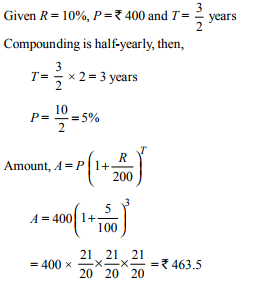 per annum and is compound half-yearly, then the principle of ₹ 400 in 3/2 years