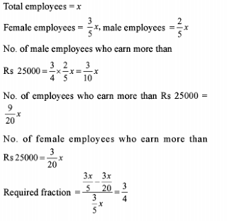 45% of the company’s employees earn more than ₹ 25,000 per year, what fraction