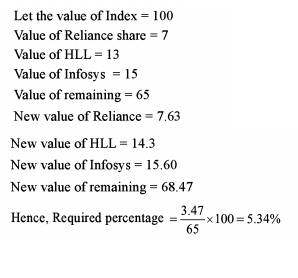 shares, if these three rise by 9%, 10% and 4% respectively, while the index