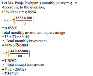 1. Ms. Pooja Pushpan invests 13% of her monthly salary, i.e.