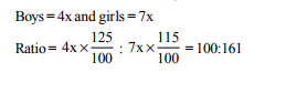 ratio of 4:7. If the number of boys are increased by 25% and the number of