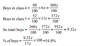 : 11. 40% in class 4 are girls and 48% in class 5 are girls. What percentage of