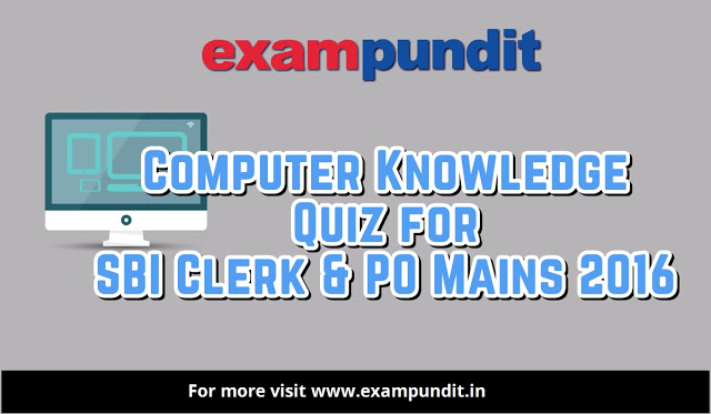 Hello and welcome to exampundit . Here is a set of Computer Knowledge Quiz for the upcoming SBI Clerk Mains 2016.