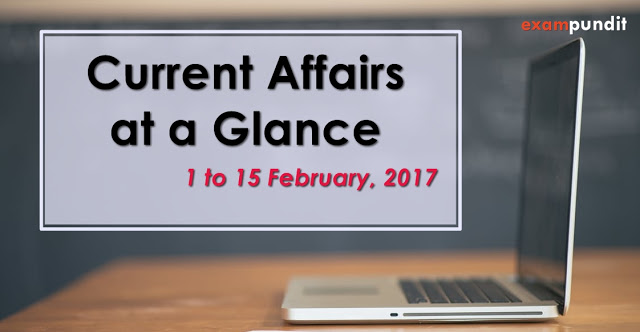 Hello and welcome to exampundit. Here is the Mid-Monthly Current Affairs at a Glance PDF for the month of February, 2017. The PDF contains all the important Current Affairs at a glance in one or two lines.