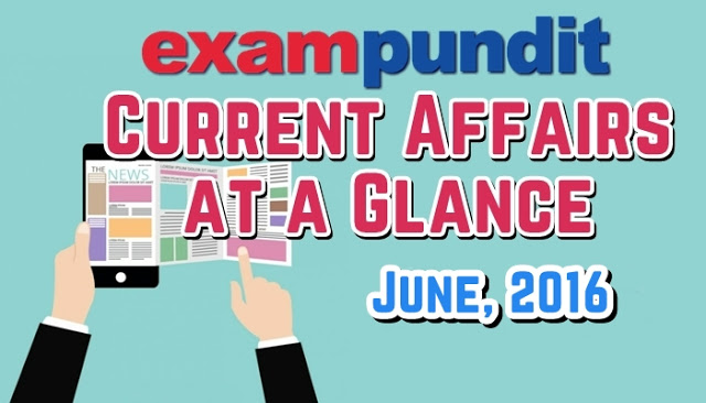 Hello and welcome to exampundit . Here is the Mid Monthly e-Magazine of Current Affairs at a Glance from June 1 to June 15. This contains every current affairs at a glance in one or two lines.