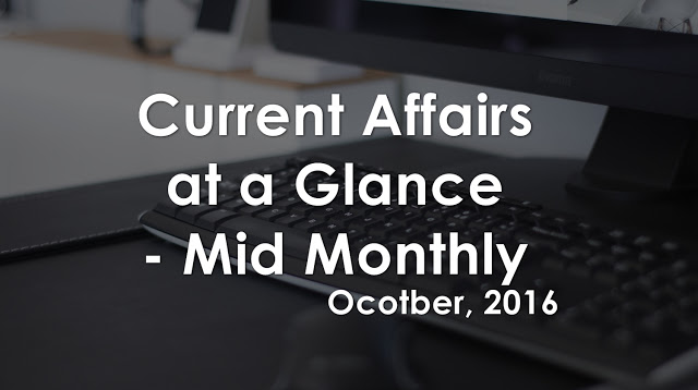 Hello and welcome to exampundit . Here is the mid-monthly Current Affairs at a Glance PDF of October, 2016. This PDF contains Important Current Affairs from 1st October to 17 October, 2016.