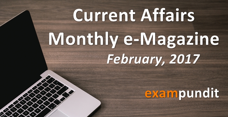 Hello and welcome to exampundit. Here is the much awaited Current Affairs Monthly e-Magazine of February, 2017. This PDF contains all the important Financial & Banking News. This PDF also contains important Appointments in the financial sector as well as grand awards like Oscars, BAFTA & Grammy.