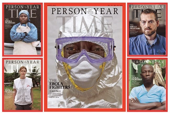 - · “The rest of the world can sleep at night because a group of men and women are willing to stand and fight. For tireless acts of courage and mercy, for buying the world time to boost its defences, for risking, for persisting, for sacrificing and saving, the Ebola fighters are Time’s 2014 Person of the Year,” Editor Nancy Gibbs said explaining the publication’s reasoning behind the choice.