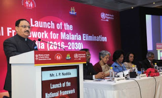 - Union Health and Family Welfare Minister Jagat Prakash Nadda on 11 February 2016 released the National Framework for Malaria Elimination (NFME) 2016-2030 at New Delhi.