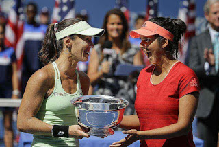 - Sania's win capped off a memorable US Open for Indians as Leander Paes had won the mixed doubles trophy with Hingis yesterday, in a repeat show of the Wimbledon.