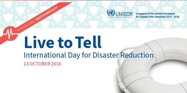 - International Day for Disaster Reduction (IDDR) was observed globally on 13 October 2016 with theme Live to Tell: Raising Awareness, Reducing Mortality. The day encourages every citizen and government to take part in building more disaster resilient communities and nations.