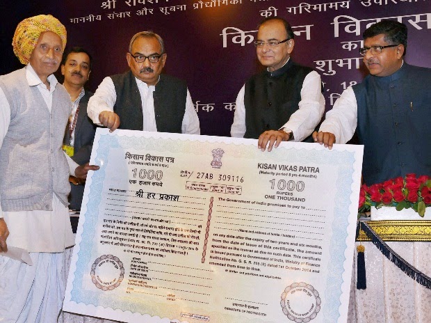 - · The Union Government on 18 November 2014 relaunched Kisan Vikas Patra scheme (KVP) in New Delhi to encourage the habit of small savings among the citizens.