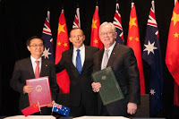 - The agreement was signed by China's Commerce Minister Gao Hucheng and Australia's Trade Minister Andrew Robb.