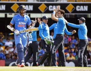 - Fast bowler Steven Finn claimed his first five-wicket haul in a one-day international as England destroyed India's batting lineup at the Gabba in Brisbane.