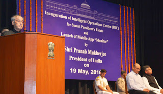 - President Pranab Mukherjee on 19 May 2016 inaugurated an Intelligent Operations Centre (IOC) in Rashtrapati Bhavan. President Mukherjee also launched a Mobile App Monitor for transformation of President’s Estate into a smart township.