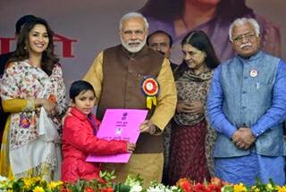 - A host of Union ministers, including Maneka Gandhi, Ravi Shankar Prasad, Smriti Irani and J P Nadda, Haryana Governor Kaptan Singh Solanki and Chief Minister Manohar Lal Khattar joined Modi as he launched the scheme.