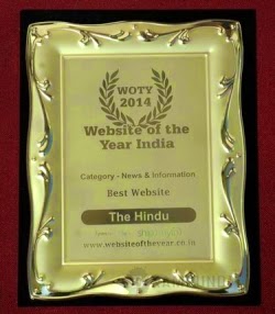 - The Hindu’s website has won the Website of the Year (WOTY) India award for 2014 in the News and Information category.