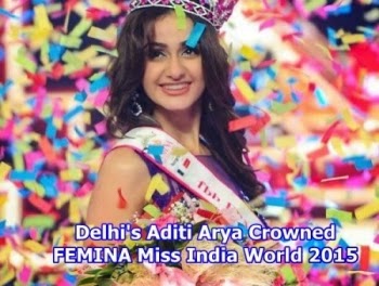 - Aditi Arya of Delhi won the fbb Femina Miss India 2015 title on 28 March 2015 at the 52nd edition of the beauty contest held at Yash Raj Studio in Mumbai. She was crowned with the title by Koyal Rana, Femina Miss India 2014.