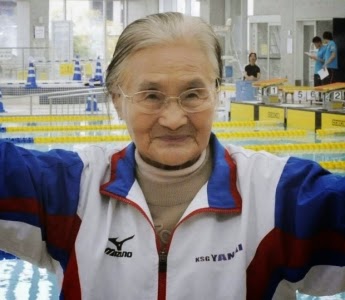 - A 100-year-old Japanese woman has become the world's first centenarian to complete a 1,500-metre freestyle swim.