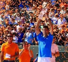 - Novak Djokovic of Serbia on 5 April 2015 beat the third seeded Andy Murray of Britain 7-6 (3), 4-6, 6-0 to win his fifth Miami Open title.