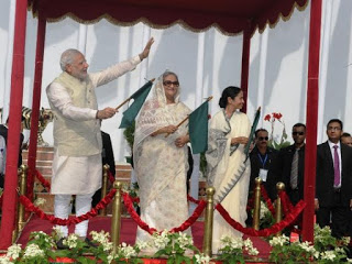 - During the flag off ceremony on the first day of Mr. Modi’s visit, he handed over a symbolic ticket of the Agartala-Dhaka-Kolkata service to Ms. Hasina and she handed over a symbolic ticket of Dhaka-Shillong-Guwahati service to her Indian counterpart. Ms. Banerjee gave Ms. Hasina a symbolic ticket of the Kolkata-Dhaka-Agartala service.