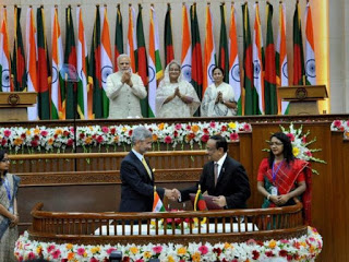 - On Prime Minister Narendra Modi’s maiden visit to Dhaka, India and Bangladesh on Saturday sealed a historic agreement that will settle a 41-year-old land boundary dispute through exchange of territories, removing a major irritant in bilateral ties.