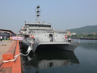 - The 50-metre twin-hulled warship is also the first to be built at a private yard with armament fixtures. The unique design of the ship was a collaborative effort of Naval Science and Technological Laboratory, IIT Kharagpur and Shoft Shipyard. The catamaran hull configuration significantly reduces its power requirement.