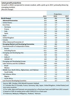 - The International Monetary Fund on 4 October 2016 released World Economic Outlook (WEO) October 2016. The report projects global growth at 3.1 per cent in 2016, with slight increase to 3.4 percent in 2017.