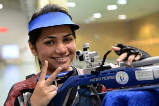 - The 22-year-old Jaipur girl finished second after she tallied 206.9, just 0.6 behind Ahmadi Elaheh of Iran, who won the gold medal with a tally of 207.5.