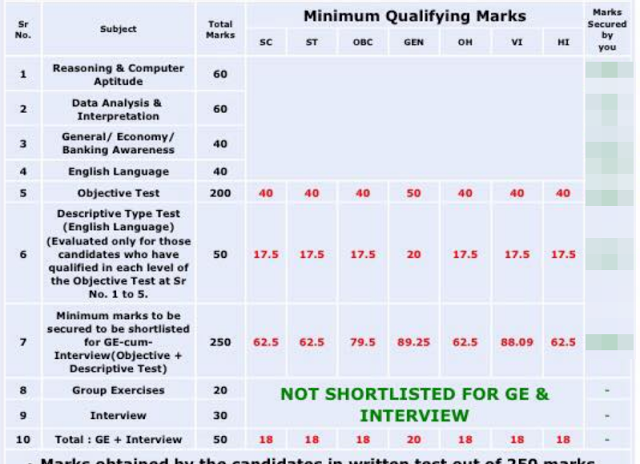 SBI PO Mains Cut-off for Interview & GE (Combined Marks of Descriptive & Objective)