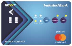 - IndusInd Bank has announced the launch of IndusInd Bank Nexxt Credit Card, which empowers customers with a choice of payment options such as EMI, Reward Points or Credit at the push of a button, on the card, at the point of sale (POS).