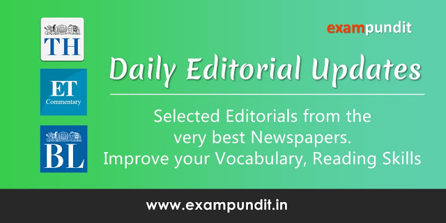 Hello and welcome to exampundit. Here is today's editorial with vocabulary from the most vocabulary enriched newspaper The Hans India.