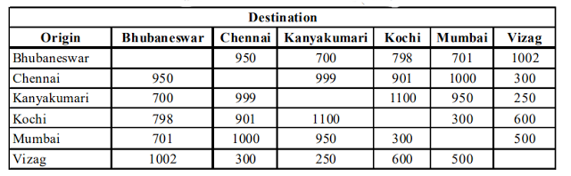 3. A school in Chennai is planning for an excursion tour for its students. They want to show them KANYAKUMARI, VIZAG, and BHUBANESWAR, not necessarily in the same order. Want is the minimum travel cost (in ₹) the school should charge from each of the student for the entire tour ?