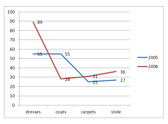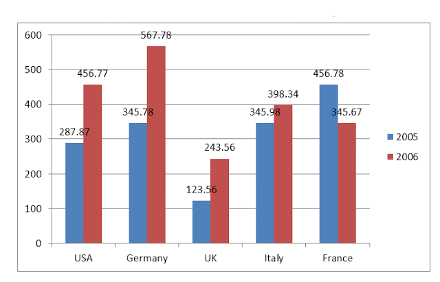 export of silk goods(in crore rupees) by different countries in the years 2005 and 2006:
