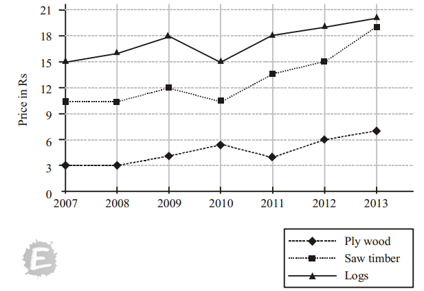 price of logs shown is per cubic meter and that of plywood and saw timber is