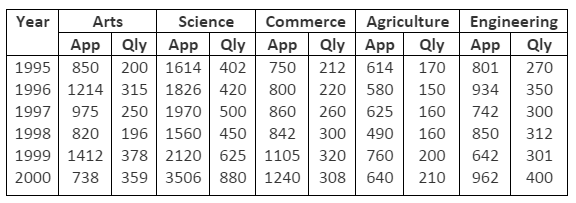 in an University Exam during academic years of 1995 to 2000 in different disciplines.