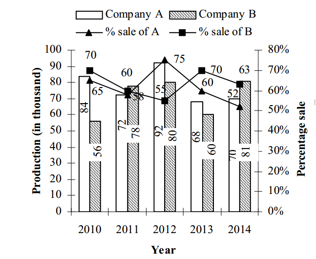 by two companies A and B from 2010 to 2014 and the line graph shows the