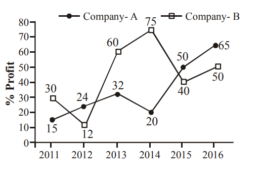 Following line graph shows the per cent profit gained by two companies A and B. The table shows the expenditure in ₹ lakh) of company A and income (in ₹ lakh) of company B.