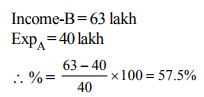 - Income of company ‘B’ in 2015 is what % more than the expenditure of ‘A’ in 2013 ?