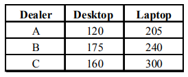- The number of desktops sold by Dealer A is what percentage of the number of laptops sold by Dealer C?