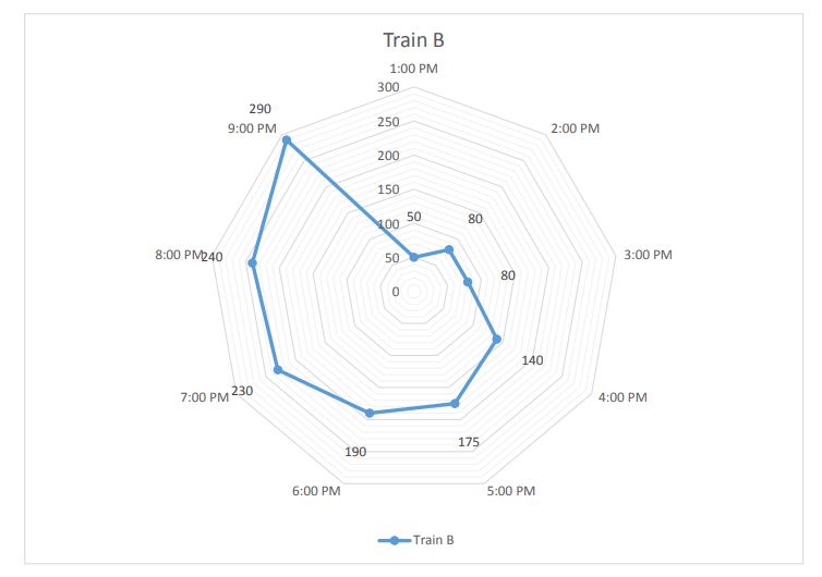 (C) If train B continues at the average speed of its final hour mentioned above, the train B will reach the station X after 1 h 30 min