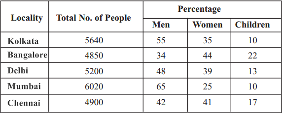 5. What is the respective ratio of number of men staying in Kolkata to the number of men staying in Delhi?