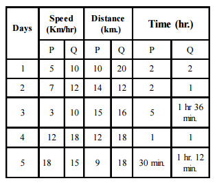 10. What was the difference between time taken by Q on day 3 and that of P on day 5?