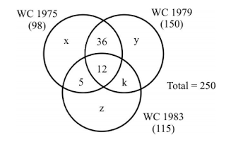 x + y + z + k = 250 – (36 + 5 + 12) = 197