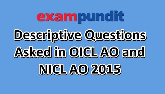 Hello and welcome to exampundit. Here are the Descriptive Questions asked in OICL and NICL AO 2015. We are reposting them as the topics might help you in upcoming UIIC AO 2016.