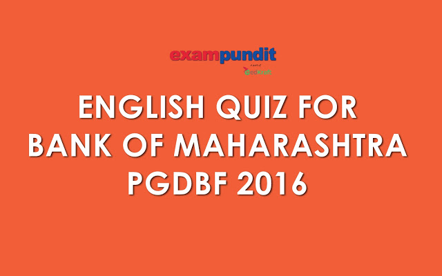 Hello and welcome to exampundit . Here is a set of English Quiz for upcoming Bank of Maharashtra PO PGDBF 2016.